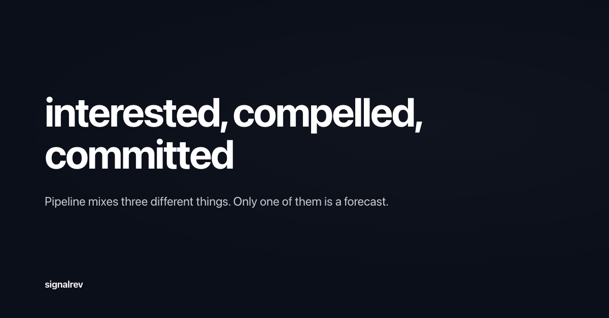 Most founder-led sales pipelines don't carry this distinction. They carry interest as if it were a pipeline. The founder can tell you every deal has activity and a next step logged. What they can't tell you is which of those deals are actually committed and which are just attention dressed up as a pipeline. So the forecast is a list of hopes with dollar amounts attached.
